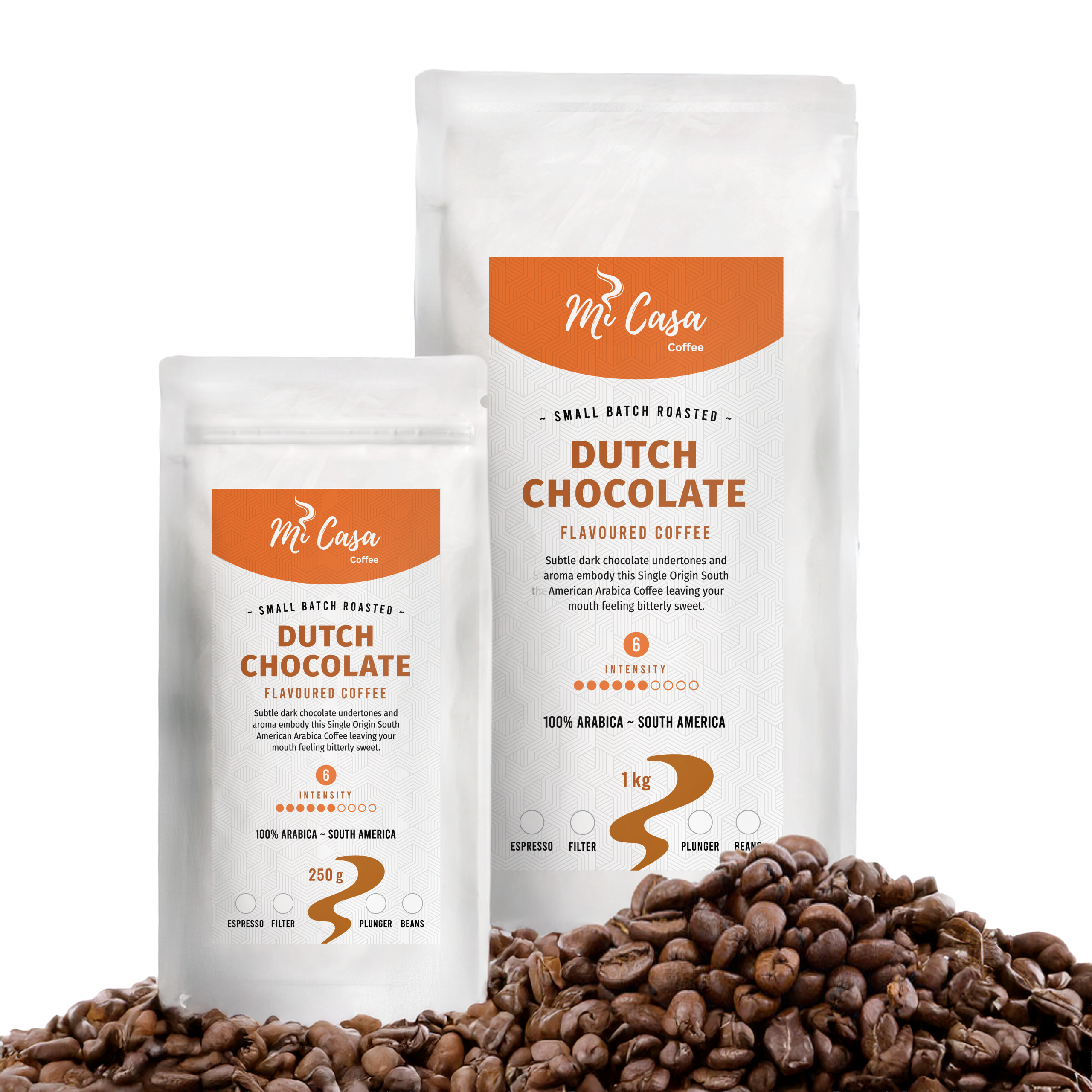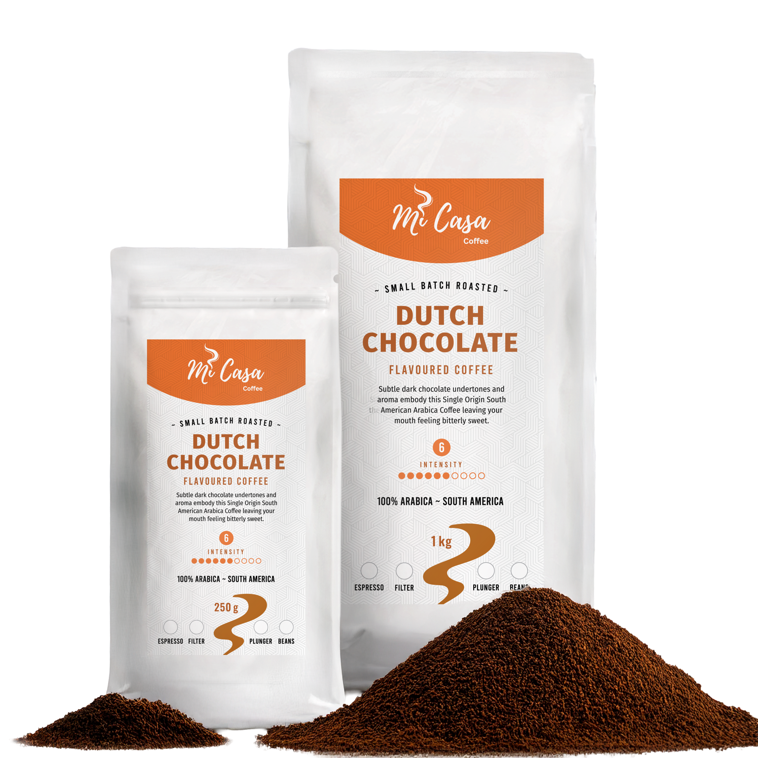 Experience the refined taste of Mi Casa Coffee Dutch Chocolate, a premium South American Arabica blend crafted for those who appreciate the art of chocolate-infused coffee. Each cup reveals delicate layers of dark chocolate aroma and flavour, balanced with a smooth, full-bodied profile.