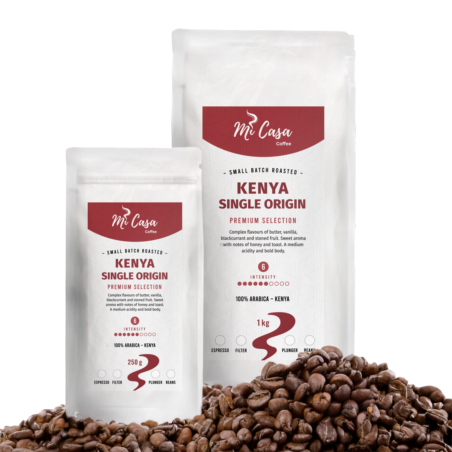 Savour the nuanced flavours of Mi Casa Coffee Kenya Single Origin. This premium medium roast features layered notes of butter, vanilla, blackcurrant, and stone fruit, complemented by honeyed aromas, medium acidity, and a bold, full-bodied finish.
