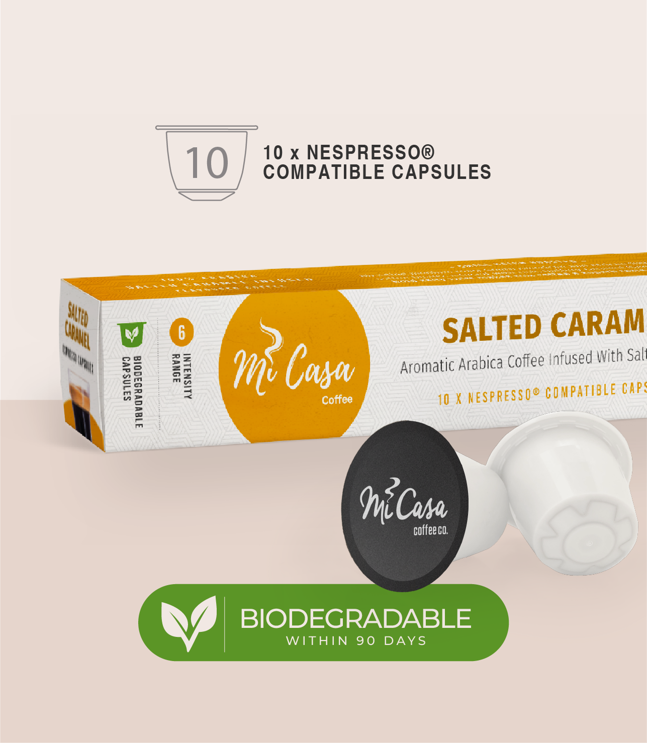 Experience the decadent combination of sweet and salty with Mi Casa Coffee Salted Caramel, a medium-roast single-origin South American Arabica expertly infused with luscious caramel. Each sip delivers a smooth, balanced flavour profile that harmoniously blends the rich sweetness of caramel with subtle salty notes.